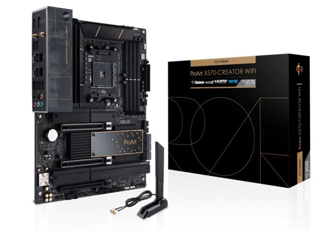 PROART X570-CREATOR WIFI, AM4, AMD X570, DDR4, Broj utora 4, Max 128 GB, Takt 2133 – 5100MHz, PCIe 4.0 x16 2, PCIe x4 1, SATA3 6, RAID 0,1,10, 8-kanalni audio, RJ45 2, WLAN 2, M.2 3, USB 3.2 8, ATX