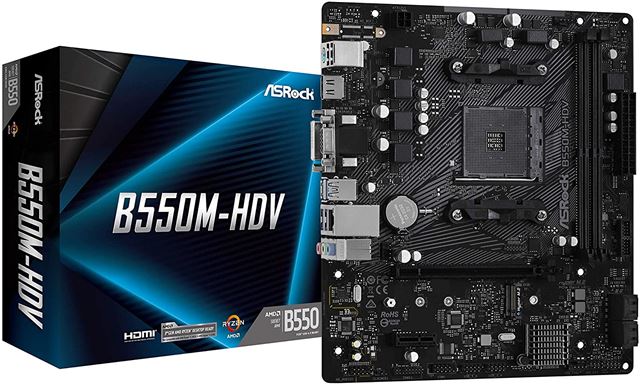 B550M-HDV, AM4, DDR4, Broj utora 2, 2133,2400,2666,2933,3200,3466,3600 ,3733,3866,4000,4133 MHz, PCIe 3.0 x16 1, PCIe x1 1, SATA3 4, RAID 0,1, 8-kanalni audio, 1x 10/100/1000 Ethernet, USB 2.0 2, mATX, M.2 1, USB 3.1 4