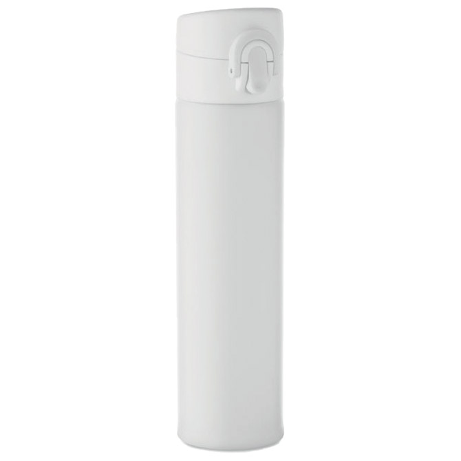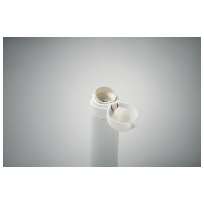 Dvoslojna boca za piće od recikliranog nehrđajućeg čelika (90% recikliranog nehrđajućeg čelika i 10% nehrđajućeg čelika) sa sigurnosnom bravom na poklopcu i opcijom otvaranja pritiskom. Ne propušta. Kapacitet: 300 ml.Dim: O5,8X22,7CM
