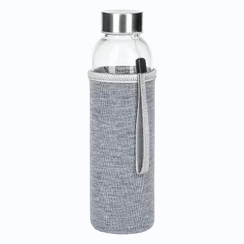 staklena boca, dimenzije 6.2×22 cm, navlaka boce od neoprena, pogodno za laser, preslikač i sito tisak, preporučena dimenzija tiska 2×5 cm