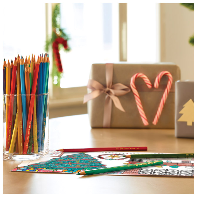 šiljene; debljina mine: 3,3 mm; šesterokutne; živopisne boje; posebno je otporna na lomljenje (specijalno spajana – SV); eko olovka (drvo iz certificiranog održivog šumarstva); kartonska kutija; blister