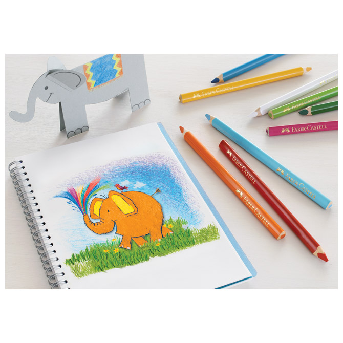 šiljene; debljina mine: 5,4 mm (iznimno debela mina); trokutaste; ergonomske; živopisne boje; jako mekan vrh za veću pokrivenost površine papira bojanjem; posebno je otporna na lomljenje (specijalno spajana – SV); eko olovka (drvo iz certificiranog održivog šumarstva); pogodna za ljevake i dešnjake; set od 24 boje; kartonska kutija; blister