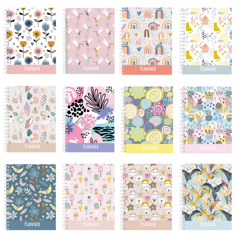 dimenzija 17×24 cm; tvrde korice; spiralni uvez; 3 lista s naljepnicama