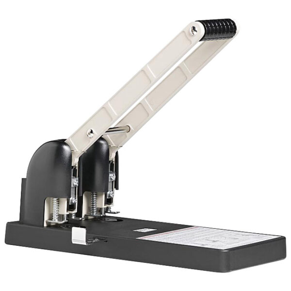 2 rupe; buši do 150 listova ili debljina 15 mm; razmak između rupa je 80 mm; ima metalni graničnik za formate: A4, A5, A6,…; promjer noža za bušenje: 6 mm; oštri noževi omogućuju bušenje bez napora; lagana i čvrsta baza; u kartonskoj kutiji dimenzije 34x16x15,5 cm; težina: 2,10 kg