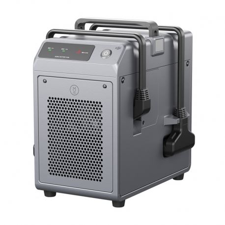 Punjač baterija za DJI Agras T10. Dimenzije 300×280×230 mm. Težina 8,1 kg. Vrijeme punjenja 7-10 min. Sustav pametnog punjenja dinamički prilagođava jačinu punjenja s obzirom na okolinu tako da stvarno vrijeme punjenja može varirati.