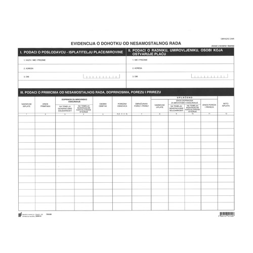 DNR/10 EVIDENCIJA O DOHOTKU OD NESAMOSTALNOG RADA (Obrazac DNR); List, 35,6 x 29,7 cm