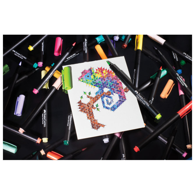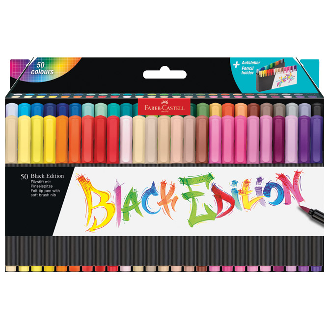 brushpen (vrh kao kist); jako mekani vrh; jednostavno i brzo mijenjanje širine poteza vrha prilikom upotrebe; idealno za male crteže i slike; periv sa većine tekstila; u kartonskoj kutiji;set od 50 boja; blister