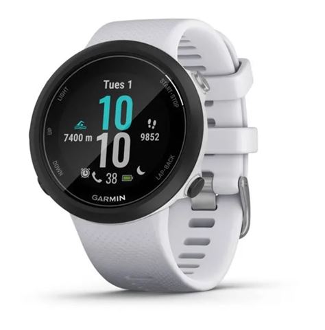 Garmin Swim 2 Whitestone, veličina kućišta je 42 x 42 x 11,4 mm, rezolucija zaslona je 208 x 208 piksela, kemijski ojačano staklo, c onnect IQ, move IQ, Trueup, zone pulsa, ručno označavanje dionice.