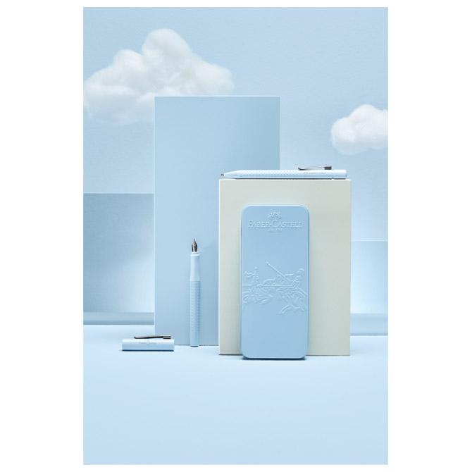 sadrži: kemijsku olovku (promjer kuglice: 1,0 mm (M); širina ispisa 0,5 mm; posebno ugodno iskustvo pisanja zahvaljujući ergonomskom trokutastom obliku te idealno balansiranoj težini olovke; šareni dvobojni izgled; metalna klipsa; s patentiranim gripom za sigurno, ne klizno držanje; mekani grip; pritisni mehanizam daje sigurnost da tinta neće iscuriti u džepu; boja tinte: plava; refil standardni velikog kapaciteta) i nalivpero (jedinstveni Grip dizajn; mekani grip za ugodnije pisanje; optimalna kombinacija tinte i vrha nalivpera omogućuje izuzetno glatko, nesmetano i lagano pisanje; metalna klipsa (srebrna) i vrh od nehrđajućeg čelika (srebrni); pogodno i za ljevake; može se koristiti klasična patrona ili pumpica Faber Castell; boja tinte: plava; debljina pera: F (fine)); u metalnoj poklon kutiji