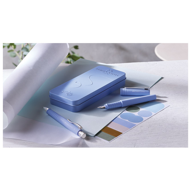 sadrži:kemijsku olovku(promjer kuglice: 1,4 mm (XB); širina ispisa: 0,6 mm; boja tinte:plava,dokument proof) i nalivpero(mekani grip za ugodnije pisanje; optimalna kombinacija tinte i vrha nalivpera omogućuje izuzetno glatko, nesmetano i lagano pisanje; pogodno i za ljevake; koristi klasičnu patronu,debljina pera B,plasrtični dijelovi izrađeni od 75 %reciklirane plastike);u metalnoj kutiji