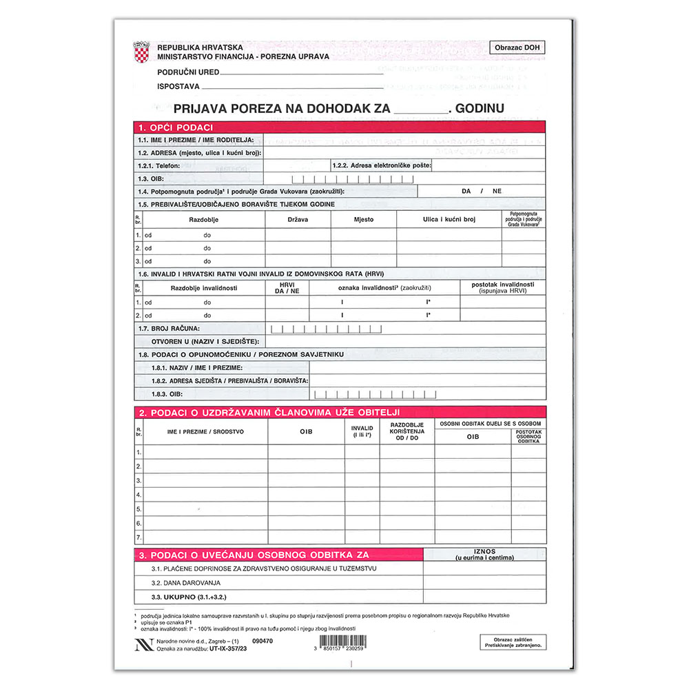 Početna PAPIR I PAPIRNA KONFEKCIJA TISKANICE platni promet IX-357/23 PRIJAVA POREZA NA DOHODAK (obrazac DOH)