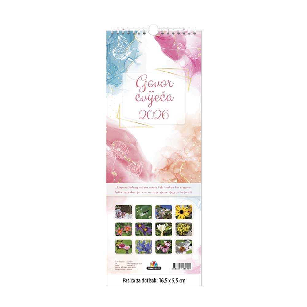 papir 150g kunstdruck mat, podložni karton 450g triplex, spiralni uvez, pakiranje u celofanskoj vrećici, dimenzije 16,5×48 cm (mjesto za dotisak 16,5×5,5 cm)