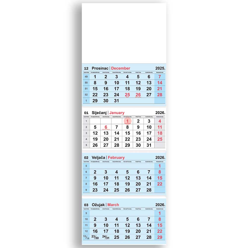 Kalendar zidni NN četverodijelni preklopni 2026.