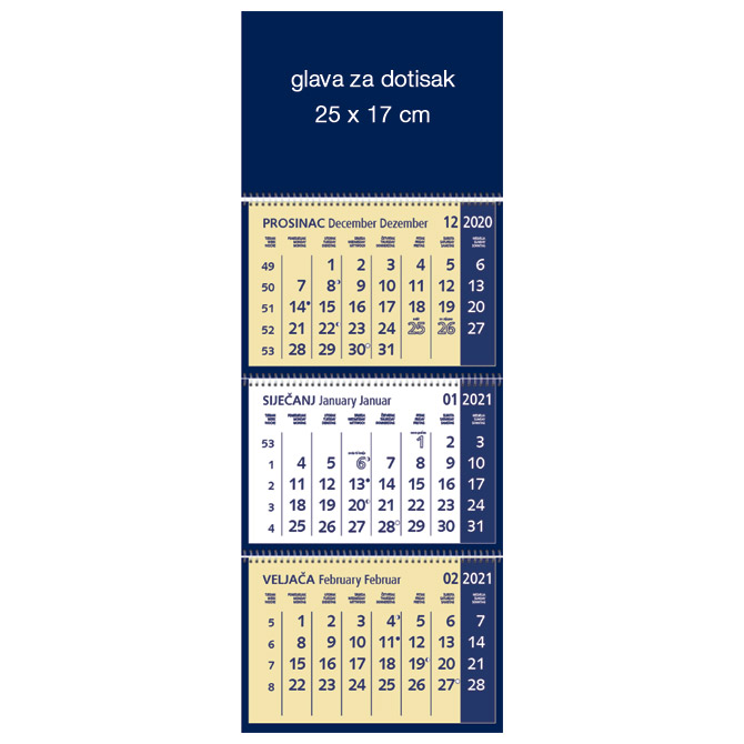KALENDAR ZIDNI TRODIJELNI – 3 SPIRALE