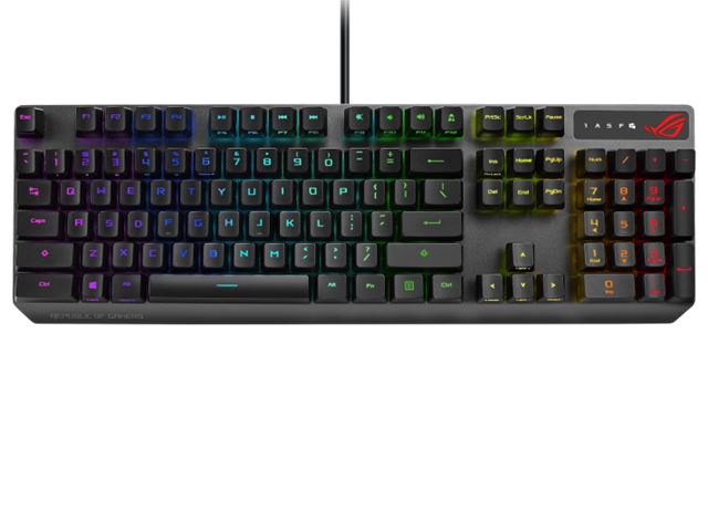 ROG Strix Scope RX optička RGB gaming tipkovnica za FPS gamere s ROG RX optičkim mehaničkim prekidačima, cjelokupnim Aura Sync RGB o svjetljenjem, IP57 otpornošću na vodu i prašinu, USB 2.0 dodatnim utorom i gornjom pločom od legure.