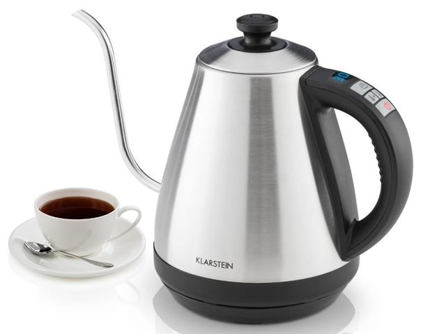 Klarstein Garcon je jednostavno i elegantno kuhalo za vodu, koje će vas osvojiti svojom jednostavnošću i tehničkim parametrima. Zahvaljujući snazi 2000 W, uređaj će vrlo brzo dovesti vodu do točke vrenja. Temperaturu je moguće podesiti u rasponu od 40 ° C i 100 ° C, točno na određeni stupanj – tako da uvijek imate na raspolaganju odgovarajuću temperaturu vode. Upravljanje funkcijama je vrlo jednostavno i intuitivno pomoću 4 funkcijske tipke. Posebno se korisnom pokazala funkcija održavanja temperature, koja održava željenu temperaturu vode u rasponu do 95 °C tijekom 30 minuta. Elegantni guščji vrat kuhala Garcon garantira precizno izlijevanje, što je neophodno za uživanje u kavi i čaju. Zahvaljujući zakrivljenom obliku, voda se izlijeva i dozira vrlo precizno.