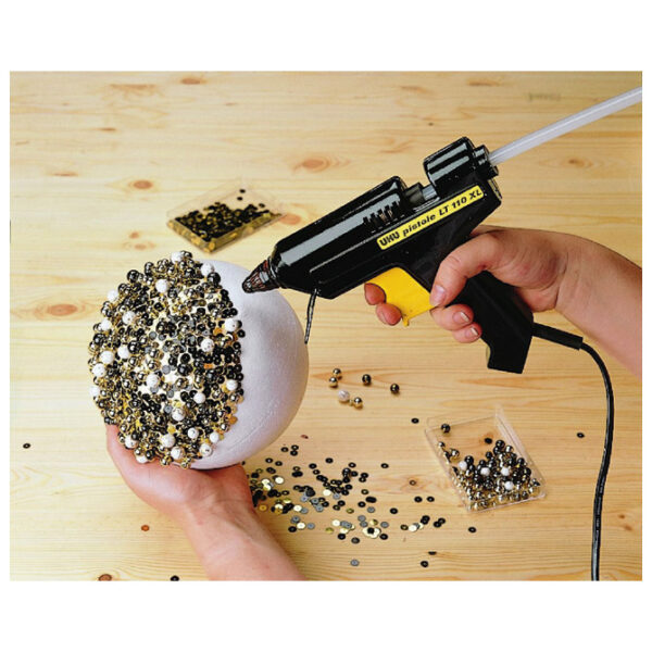 težina: 180 g; količina otapanja/sat: 280 g; za: dekoraciju, kreativno oblikovanje i kućne popravke; lijepljenje pri nižoj temperaturi omogućava veću sigurnost i veću univerzalnu primjenu; za: drvo, metal, umjetne materijale, staklo, keramiku, kožu, tekstil, Styropor® i druge materijale koji su osjetljivi na visoke temperature; mogu se koristiti ulošci sa šljokicama i u boji; snaga 10 W; vrijeme zagrijavanja 3-5 minuta; sadrži 4 patrone; 2 godine garancije kada se koriste ulošci UHU LT 110; blister