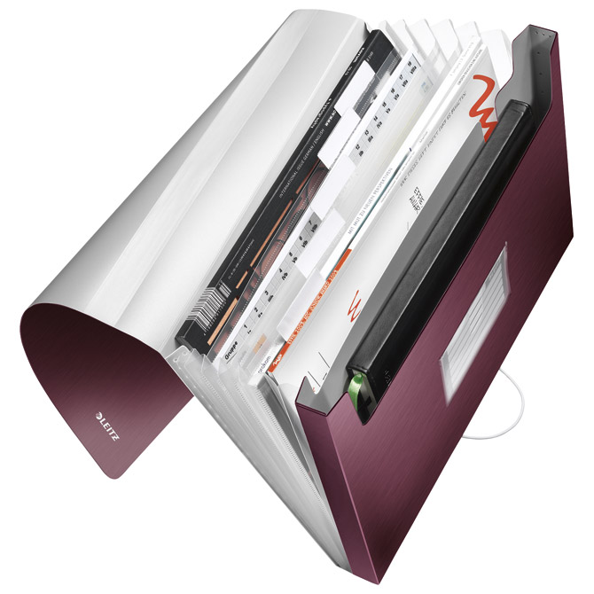 format: A4; PP; ima 6 pregrada; kapacitet: 250 listova; s gumicom i džepom za vizitku s prednje strane; atraktivno metalno zatvaranje za sigurnost spisa