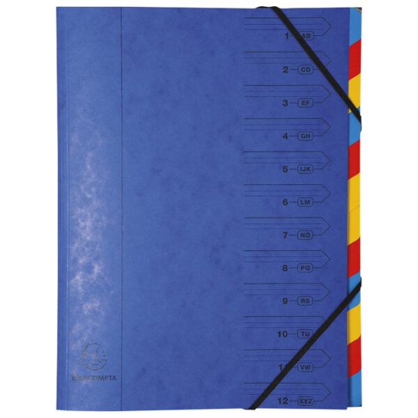 Mapa za odlaganje spisa 12 pregrada s gumicom karton Exacompta 54122E plava