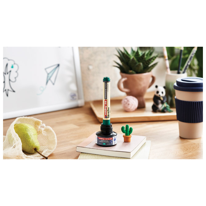 nepermanentni; s mogućnošću ponovnog punjenja; okrugli vrh; širina ispisa: 1,5-3 mm; otporan na svjetlo; brzo se suši; lako se briše sa svih glatkih površina (staklo, melamin,…); za pisanje po svim glatkim površinama i bijeloj ploči; marker može biti bez poklopca par dana, a da se ne osuši; Eco-friendly (najmanje 90 % ukupne plastike je napravljeno od recikliranog materijala)