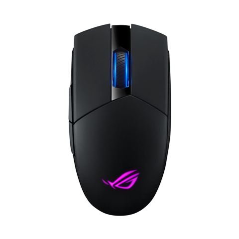 ROG Strix Impact II bežični gaming miš s bežičnom 2,4 GHz vezom, optičkim senzorom od 16000 dpi, pet programabilnih tipki, Omrion brzim i preciznim prekidačima i Aura Sync RGB osvjetljenjem. Moguće korištenje u žičanom obliku.