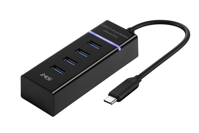 MS CABLE USB Type C Hub s 4 priključka, podržava prijenos podataka do 5 Gbps, Plug & Play crna ABS školjka, boja: crna, duljina: 0,3m