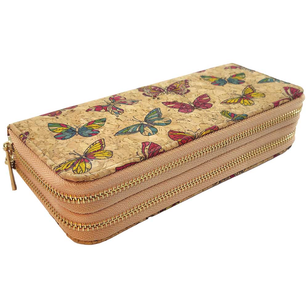 dimenzije 20×9,5×5 cm, od prirodnog pluta, dupli novčanik s 2 zatvarača, unutrašnjost sadrži 4 pretinca za novčanice, 12 pretinaca za kartice, pretinac za kovanice, kartice