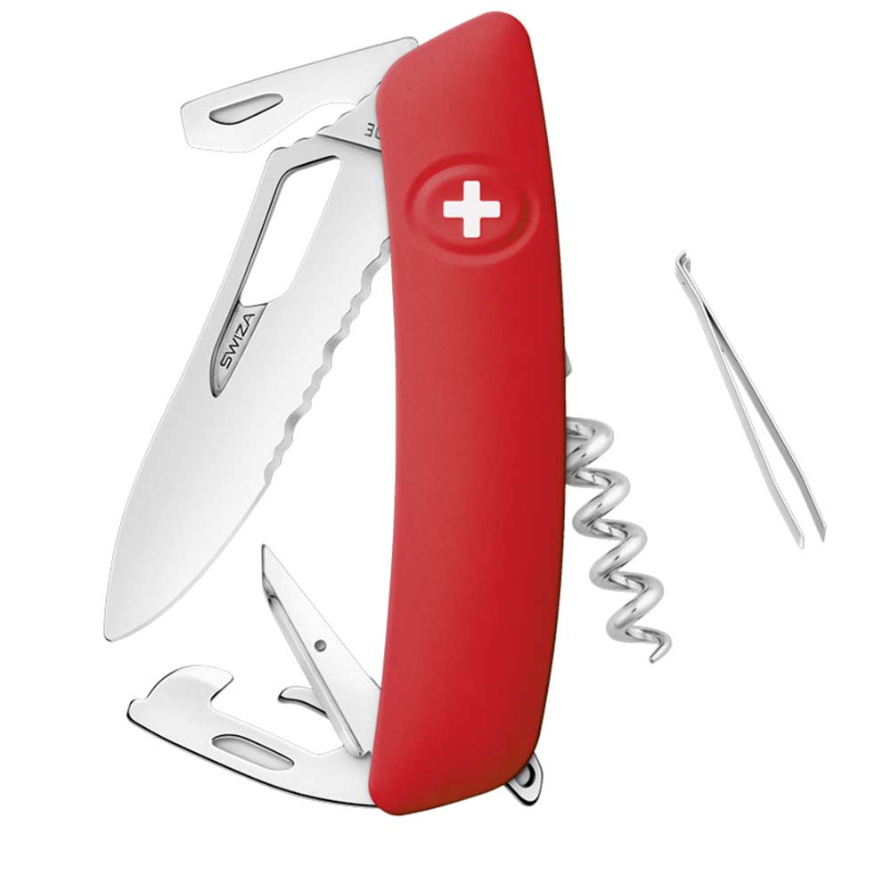 12 funkcija, nazubljena oštrica od 75mm sa sigurnosnom kočnicom, brzo otvaranje jednom rukom, svrdlo – šilo sa ušicom za šivanje, sommelierski otvarač plutenih čepova, otvarač boca sa ravnim odvijačem br. 3 i savijačem žica, otvarač konzervi sa ravnim odvijačem br. 1, pinceta