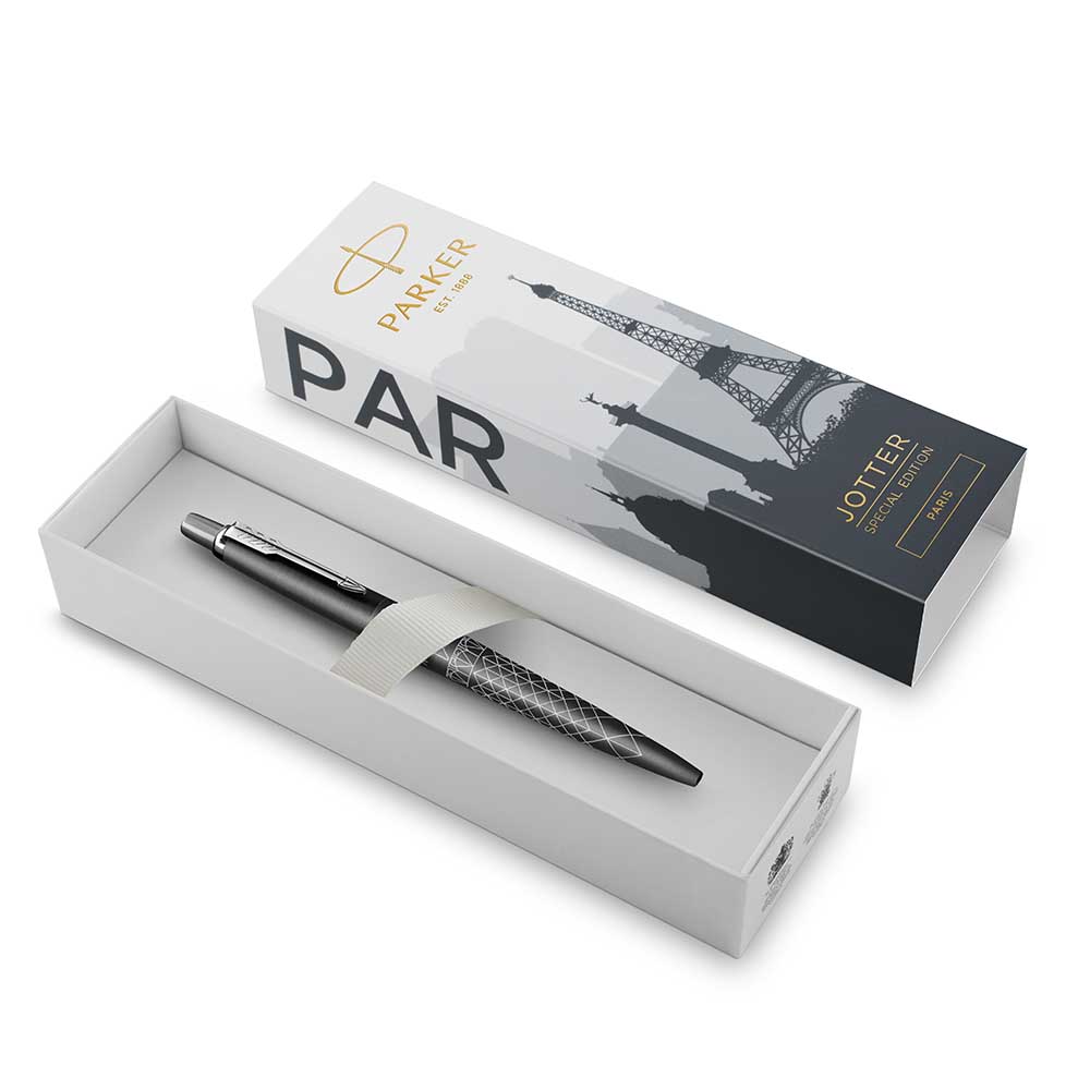 Olovka kemijska Parker Jotter, Global Icon Paris, siva, vrh medium, plava tinta