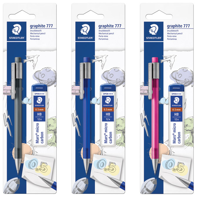 s tubom mina 0,5 mm HB (12 mina); boje: roza, siva i svijetloplava; blister