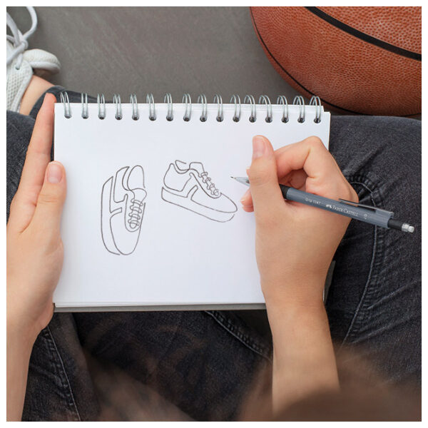 mina 0,5 mm; s gumicom koja se izvlači okretnim mehanizmom (twist-out) i može se zamijeniti; gumirani grip; metalni vrh i klipsa; za pisanje i crtanje sa vrhom koji se posve uvlači u olovku; sistem protiv pucanja mina