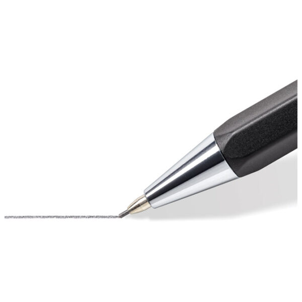 s gumicom (bez lateksa i PVC-a); vrh i klipsa od metala; plastična; tanka, šesterokutna; s mat završetkom; vrh se uvlači; sistem protiv pucanja mina
