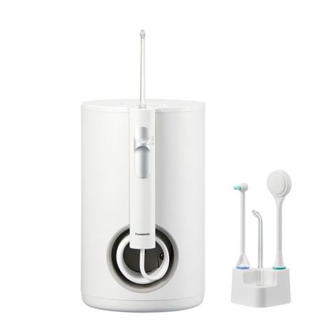 PANASONIC oralni tuš EW1614W503 – Stacionarni oralni irigator sa ultrazvučnom tehnologijom; 4 mlaznice za različite potrebe: 2 ultra zvučne mlaznice, 1 ortodontska mlaznica; 1 mlaznica za negu jezika; Pritisak vode: 647 кPа