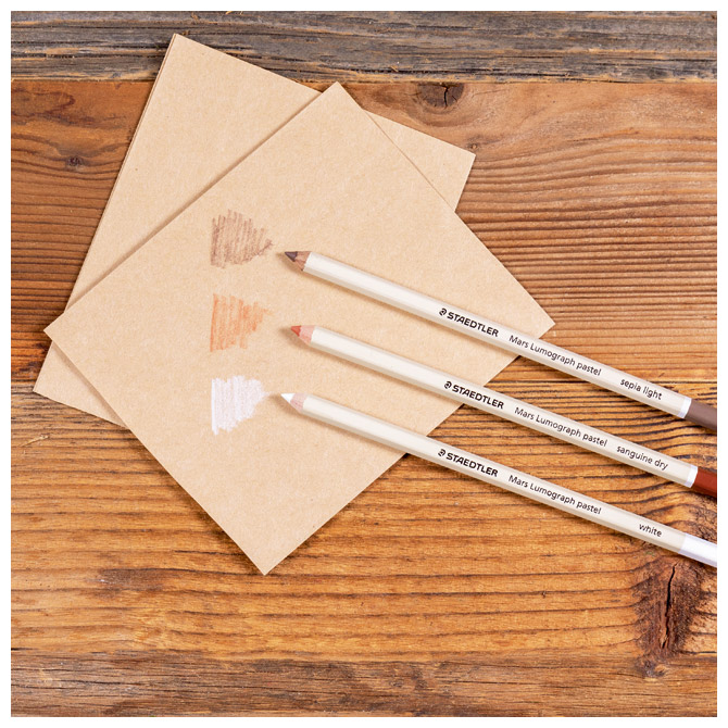 šesterokutna; debljina mine: 3,6 mm; visoke kvalitete; visooka razina pigmenta za fine detalje; izvrsno se može miješati i sjenčati; idealna za skice i portrete; u kombinaciji sa ugljenom Mars Lumograph daje odlične rezultate; izrađena od certificiranog drva; set od 6 boja: lightning, sepia dark, sepia dry, sepia light, umber i white; blister