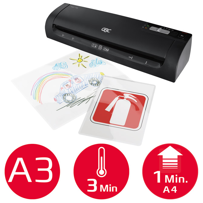 plastificira dokumente do A3 formata (maksimalna širina 303 mm)