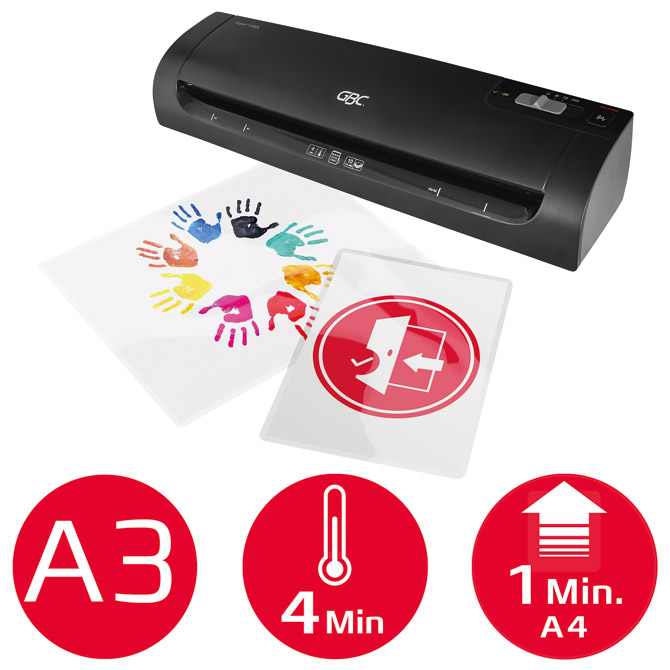 plastificira dokumente do A3 formata (maksimalna širina 303 mm)