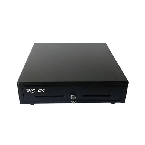 Ladica za novac MS 410, 5 novčanice/ 8 kovanice, Epson standard RjJ11, RJ12, 410(Š)x420(D)x100(V), metalna konstrukcija, 7,6kg, 6V/9V/12/24V crna