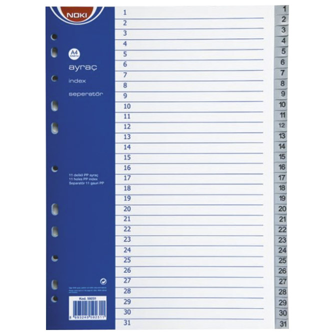 Pregrada plastična A4 brojevi 1-31 Noki 59231 siva!!