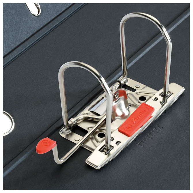 format: A4; hrbat s džepom i etiketom; presvučen obostrano PP folijom u boji; metalna šina na donjim rubovima, bočno zatvaranje i rupa za prst na hrptu za jednostavno rukovanje i sigurno skladištenje dokumenata; poboljšani mehanizam s gumiranim pritiskivačem i hvatištem za ugodnije rukovanje