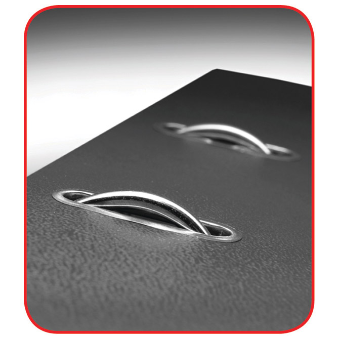 format: A4; hrbat: 80 mm; plastificirani karton s vanjske strane i crni papir s unutarnje strane; bočno zatvaranje i rupa za prst na hrptu za jednostavno rukovanje i sigurno skladištenje dokumenata; poboljšani mehanizam s gumiranim pritiskivačem i hvatištem za ugodnije rukovanje; FSC mix