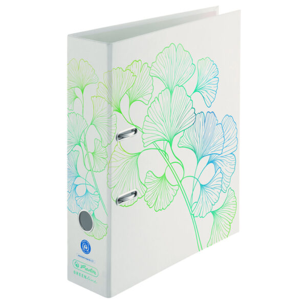 format A4; hrbat širine 8 cm; karton s motivom s vanjske strane, reciklirani sivi karton s unutarnje strane; mehanizam s gumiranim pritiskivačem i hvatištem za ugodnije rukovanje; oznaka Plavi anđeo, FSC oznaka koja potvrđuje da korišteno drvo dolazi iz šuma gospodarenih po principu održivog razvoja; garancija 10 godina na mehanizam