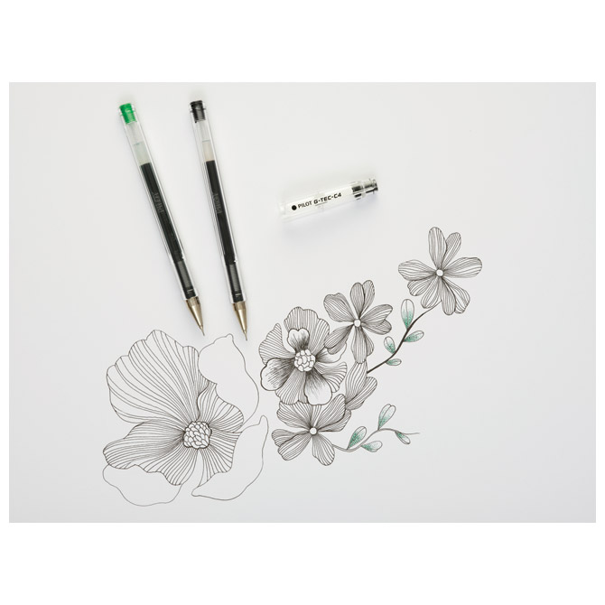 promjer kuglice: 0,4 mm; širina ispisa 0,2 mm; plastično tijelo olovke; metalni vrh; razina tinte je vidljiva; tinta na bazi gela (Bio-polymer); s poklopcem; rezervni uložak BLS-GC4; prikladan i za grafičko crtanje i skiciranje