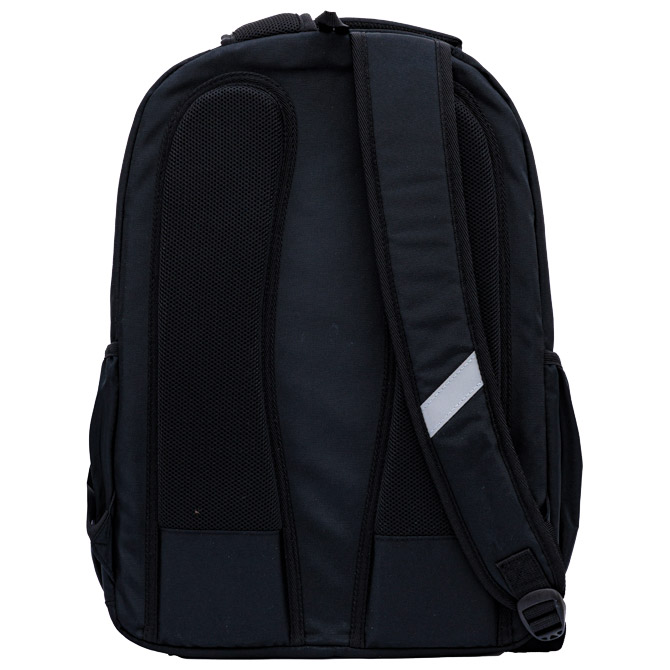 dimenzija: 30x44x19 cm; meke naramenice s podešavanjem duljine; ergonomski oblikovan leđni dio omogućava protok zraka; snažno reflektirajući; sigurnosni dijelovi; ojačana ručka; 3 odjeljka sa zatvaranjem na zip; organizator s privjeskom za ključeve u prednjem odjeljku; odjeljak za prijenosno računalo; pretinci na bočnim stranama; vodootporan materijal