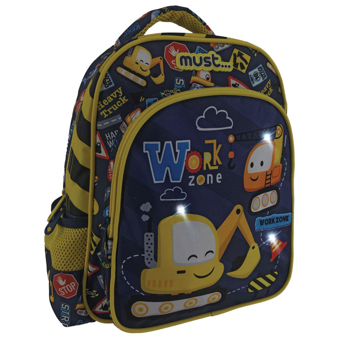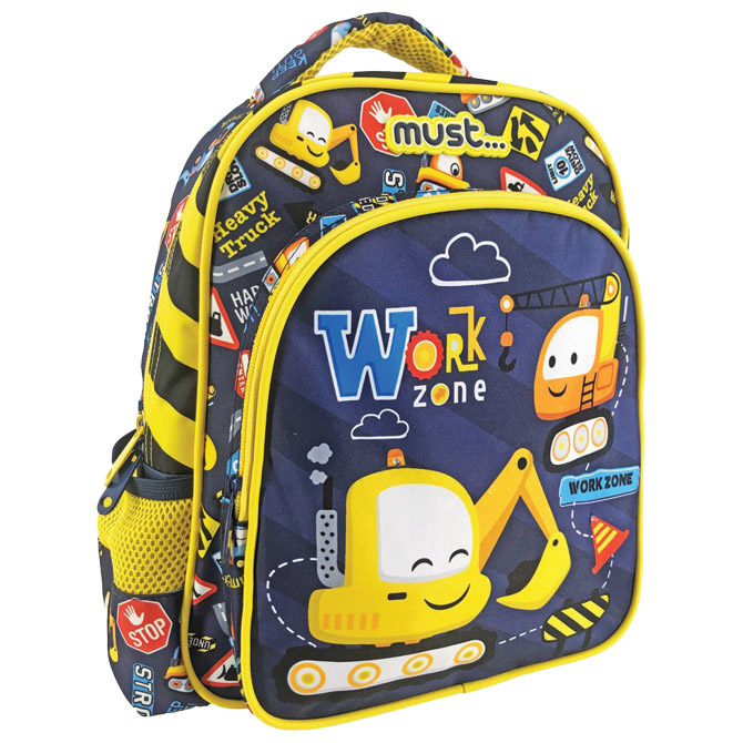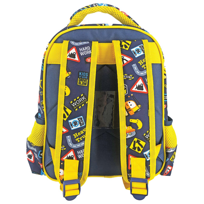 dimenzija: 27x31x10 cm; podstavljene naramenice; remenčići za podešavanje; ojačana ručka za nošenje; 1 odjeljak sa zatvaranjem na zip; 1 džep na zip s prednje strane; pretinci na bočnim stranama; ima mjesto za napisati ime; sirovinski sastav: poliester