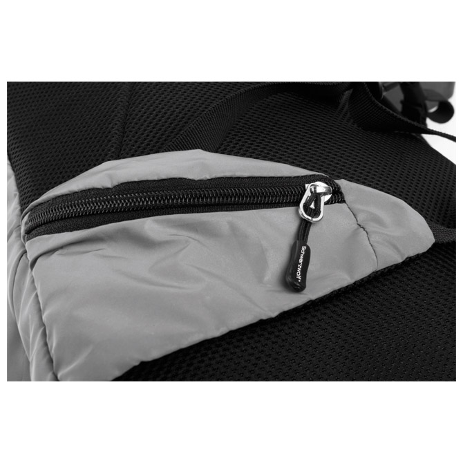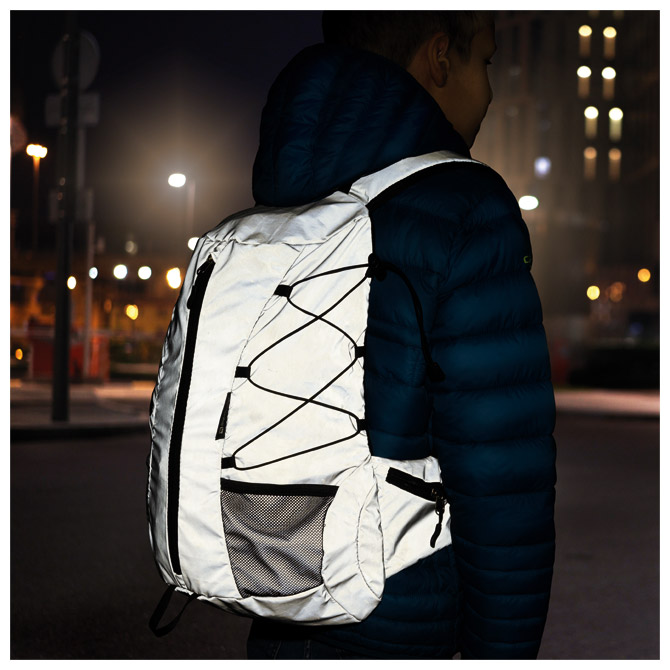 Reflektirajući Schwarzwolf biciklistički ruksak koji je prikladan i za svakodnevno nošenje; Izrađen je od visoko reflektirajućeg materijala koji zadovoljava zahtjeve standarda EN ISO 20471 za zaštitnu odjeću; Ruksak ima podstavljeni leđni sustav i podstavljene naramenice; Ruksak također uključuje glavni pretinac s patentnim zatvaračem, džep s patentnim zatvaračem sa strane, mali mrežasti džep s druge strane i pojas za struk s dva mala džepa s patentnim zatvaračem; Volumen: 20 l. Težina: 395 g. Materijal: 100% poliester s reflektirajućim premazom; Dimenzije: 28×45×14 cm; Ugljični otisak: gCO2 e7827.