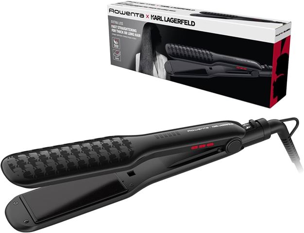 Rowenta Extra Liss SF411L Keratin & Tourmaline Coated Hair Straightener, LED Display, Large Floating Plate System, Temperature Adjustment & Auto Shutdown, Black