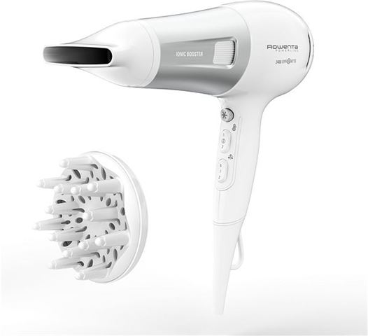 2 položaja brzina puhanja / 3 temperatura Funkcija puhanja hladnog zraka za učvršćenje frizure Novi eksluzivni usmjerivač zraka Ionic funkcija – smanjuje statički elektricitet u kosi Difuzor Termo control Snaga: 2.400W