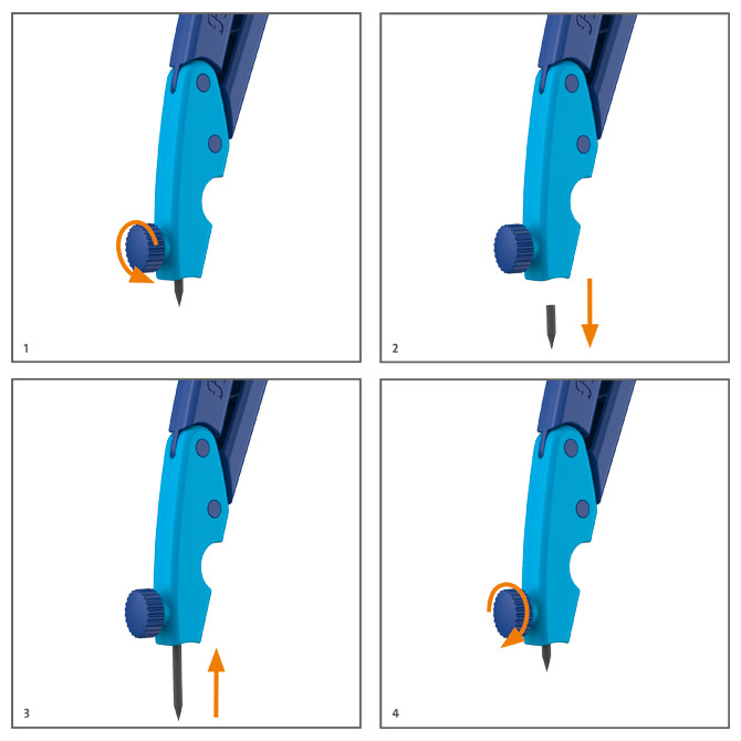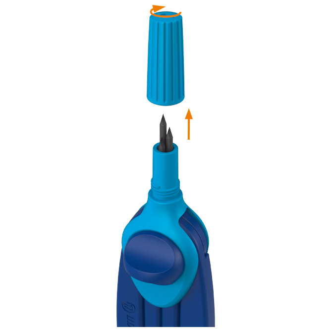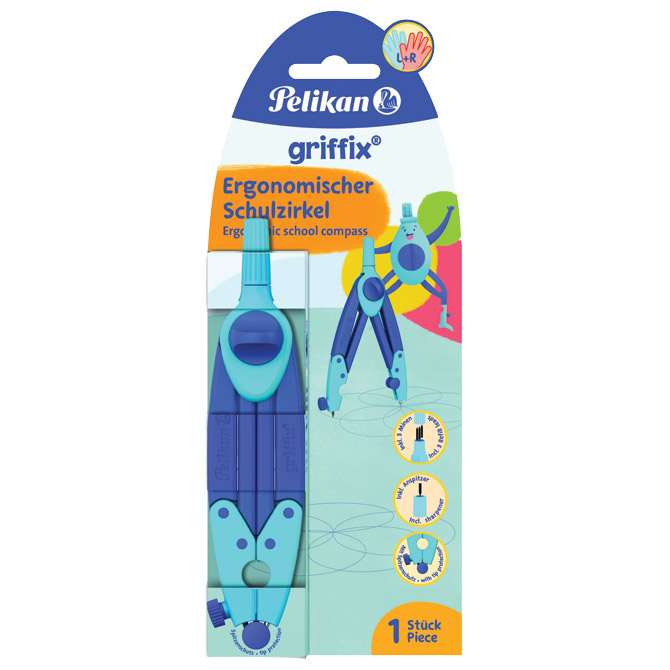 ergonomski; sa 3 dodatne mine u kapici; sa šiljilom za mine koje je integrirano u kapici; svi dodatni djelovi su na samom šestaru (nije potrebna kutija za djelove, lakši transport); duljina šestara: 150 mm
