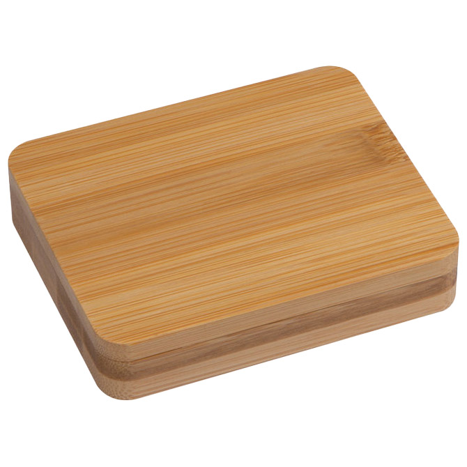 Set za manikuru u bambusovoj kutijici s magnetskim zatvaranjem. Sastoji se od rašpice, škarica za nokte, rezača za nokte, alata za uklanjanje dlačica i potiskivača noktiju. Pogodno za gravuru loga.