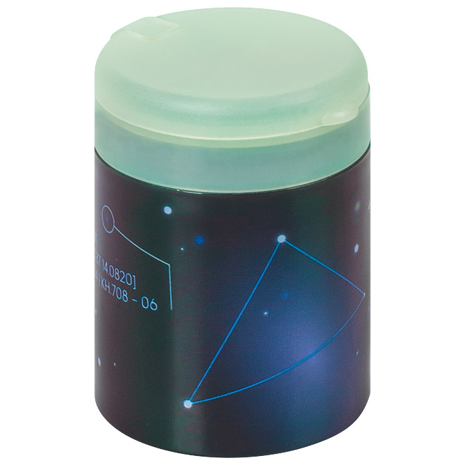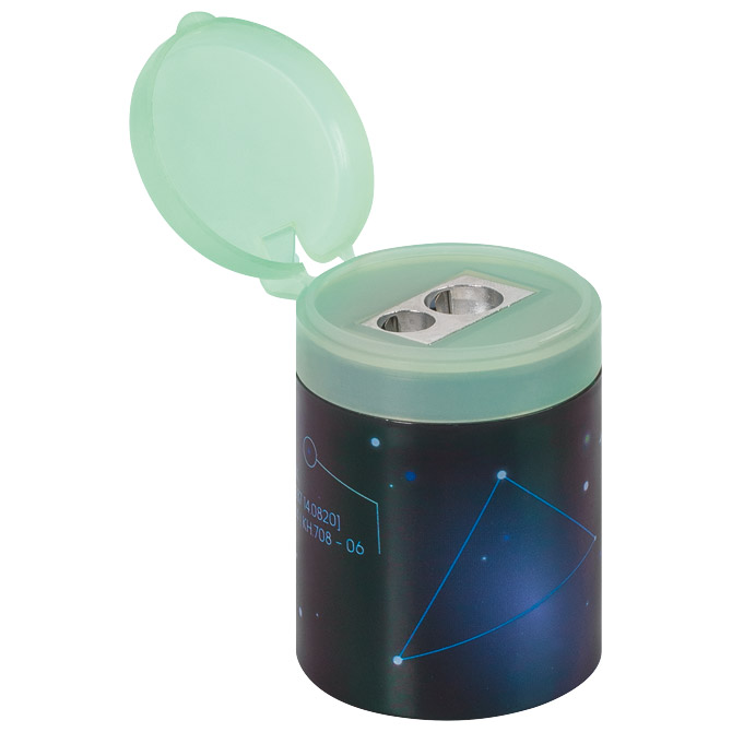 metalno; s PVC kutijom sa poklopcem; 2 rupe; za standardne i jumbo olovke; dimenzija: 4×5,5 cm
